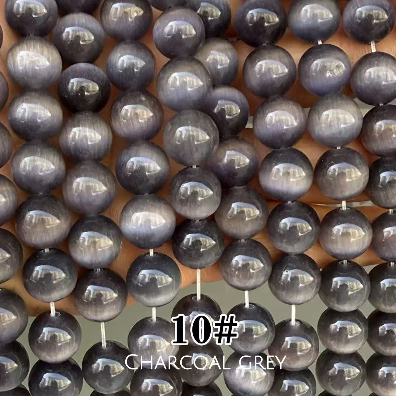 Cat's Eye Round Beads 15" Strand 10# (Charcoal Grey)